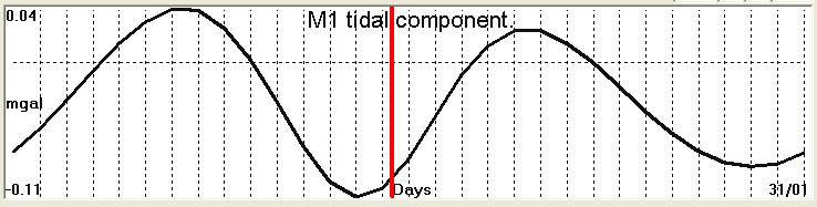 Fig. 2. M1 tidal variation (black line) v.s time of occurrence (red bar) of the EQ.
