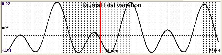 Fig. 3. Diurnal (K2) tidal variation (black line) v.s time of occurrence (red bar) of the EQ.