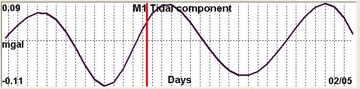 Fig. 2. M1 tidal variation (black line) v.s time of occurrence (red bar) of the EQ.