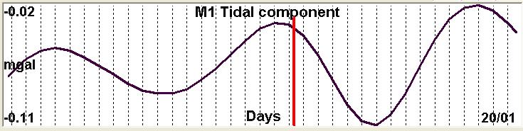 Fig. 2. M1 tidal variation (black line) v.s time of occurrence (red bar) of the EQ.