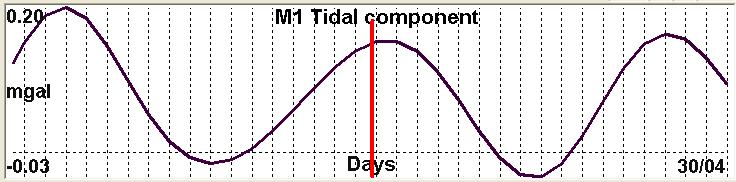 Fig. 2. M1 tidal variation (black line) v.s time of occurrence (red bar) of the EQ.