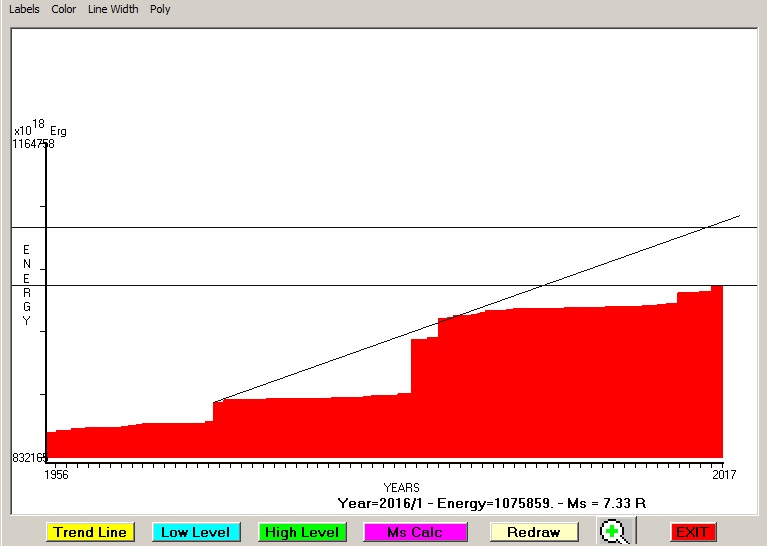 Fig. 4. Expected EQ magnitude due to application of the LSEFM (Lithospheric Seismic Energy Flow Model) on past seismic history of the regional seismogenic area.