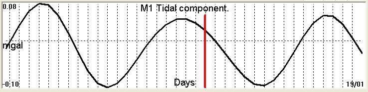 Fig. 2. M1 tidal variation (black line) v.s time of occurrence (red bar) of the EQ.