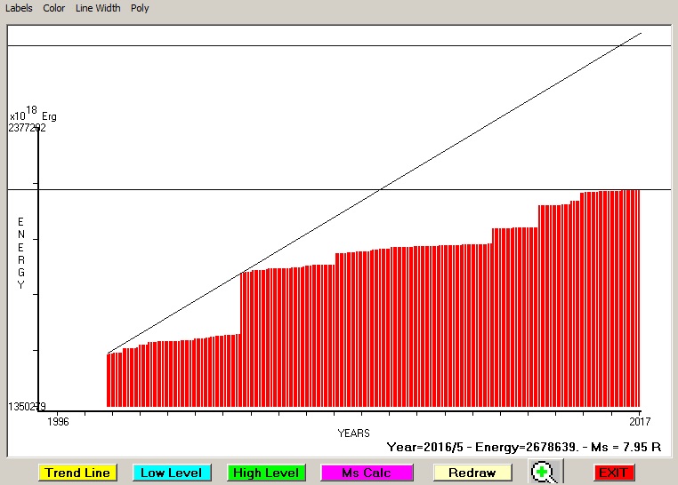 Fig. 4. Expected EQ magnitude due to application of the LSEFM (Lithospheric Seismic Energy Flow Model) on past seismic history of the regional seismogenic area.