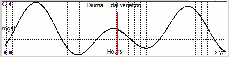 Fig. 3. Diurnal (K2) tidal variation (black line) v.s time of occurrence (red bar) of the EQ.