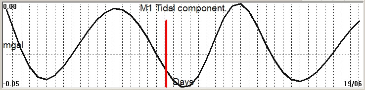 Fig. 2. M1 tidal variation (black line) v.s time of occurrence (red bar) of the EQ.