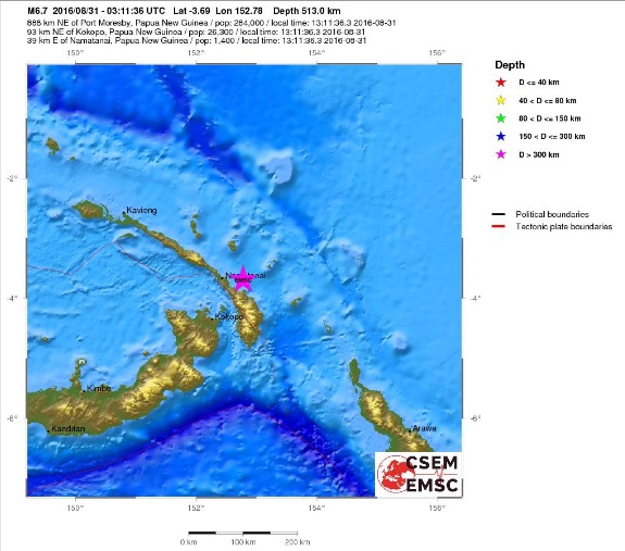 M 6.7 - NEW IRELAND REGION, P.N.G. - 2016-08-31 03:11:36 UTC