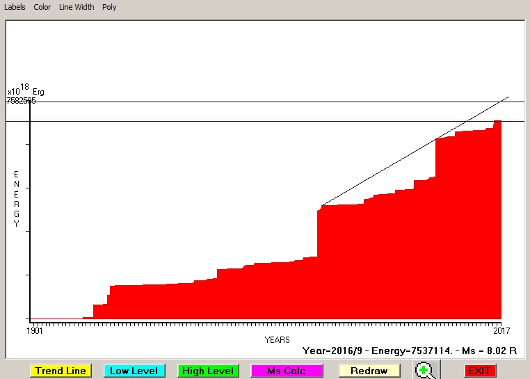 Fig. 4. Expected EQ magnitude due to application of the LSEFM (Lithospheric Seismic Energy Flow Model) on past seismic history of the regional seismogenic area.