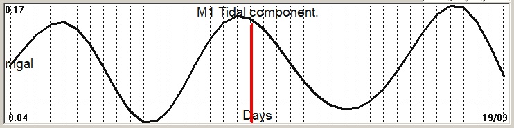 Fig. 2. M1 tidal variation (black line) v.s time of occurrence (red bar) of the EQ.