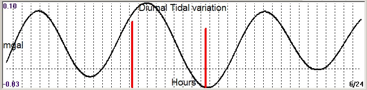Fig. 3. Diurnal (K2) tidal variation (black line) v.s time of occurrence (red bar) of the EQ.