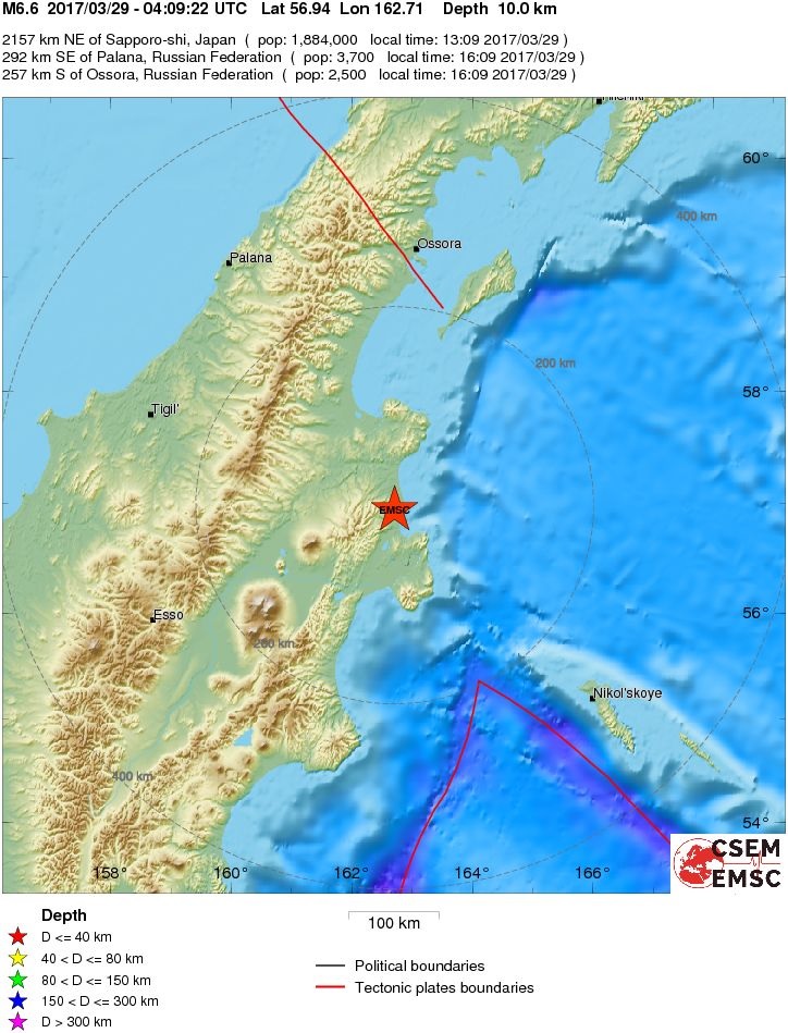 M 6.6 - NEAR EAST COAST OF KAMCHATKA - 2017-03-29 04:09:22 UTC