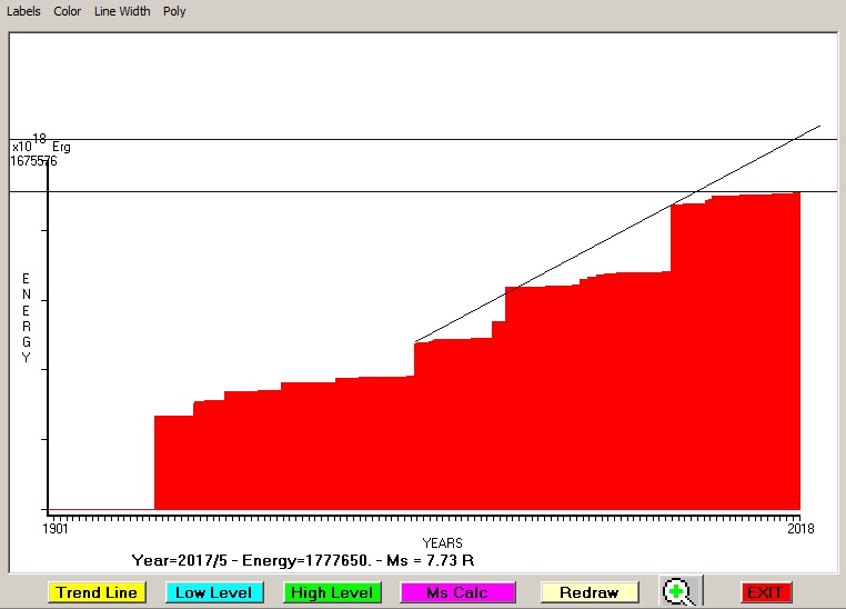 Fig. 4. Expected EQ magnitude due to application of the LSEFM (Lithospheric Seismic Energy Flow Model) on past seismic history of the regional seismogenic area.