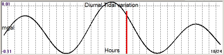 Fig. 3. Diurnal (K2) tidal variation (black line) v.s time of occurrence (red bar) of the EQ.