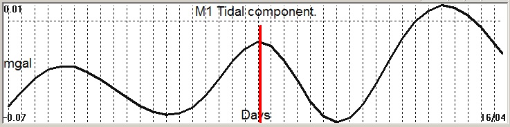 Fig. 2. M1 tidal variation (black line) v.s time of occurrence (red bar) of the EQ.