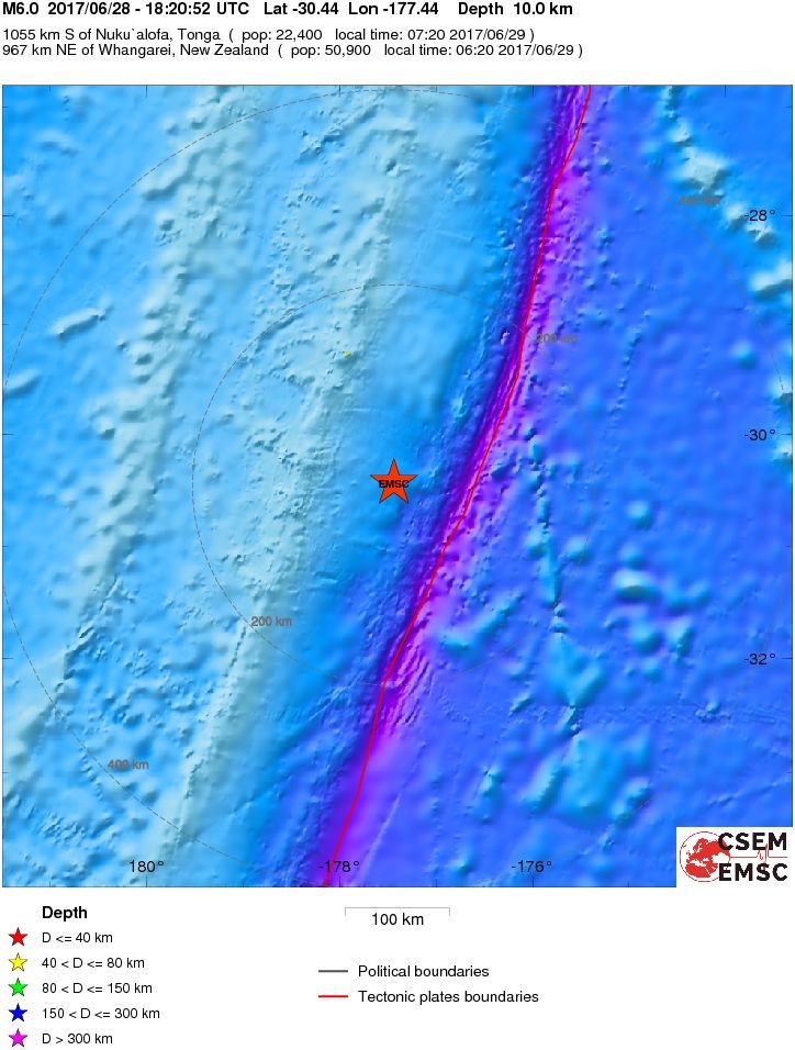 M 6.0 - KERMADEC ISLANDS, NEW ZEALAND - 2017-06-29 07:03:09 UTC M 6.0 - KERMADEC ISLANDS, NEW ZEALAND - 2017-06-28 18:20:52 UTC