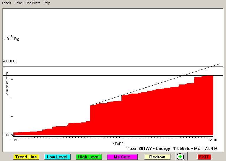 Fig. 4. Expected EQ magnitude due to application of the LSEFM (Lithospheric Seismic Energy Flow Model) on past seismic history of the regional seismogenic area.