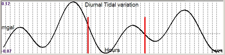 Fig. 3. Diurnal (K2) tidal variation (black line) v.s time of occurrence (red bar) of the EQ.
