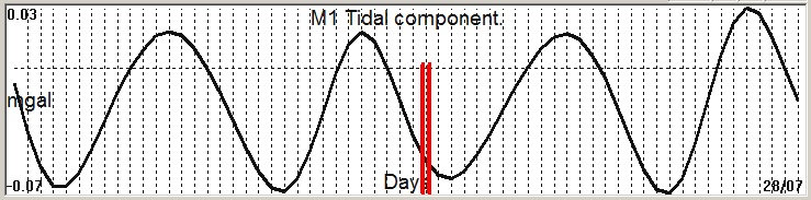 Fig. 2. M1 tidal variation (black line) v.s time of occurrence (red bar) of the EQ.