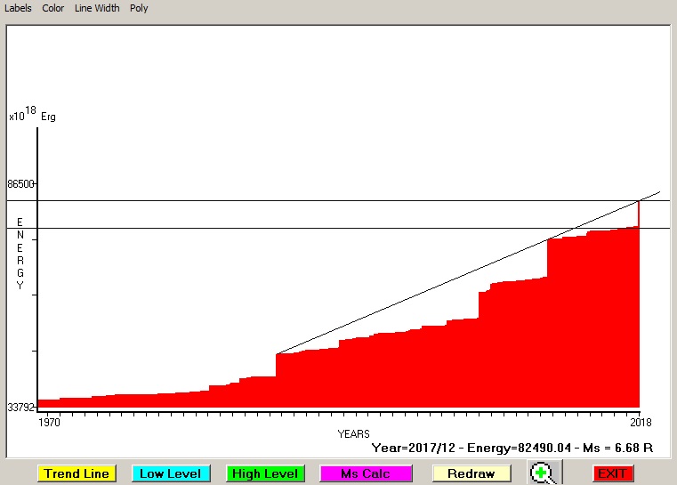 Fig. 4. Expected EQ magnitude due to application of the LSEFM (Lithospheric Seismic Energy Flow Model) on past seismic history of the regional seismogenic area.