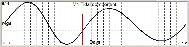 Fig. 2. M1 tidal variation (black line) v.s time of occurrence (red bar) of the EQ.