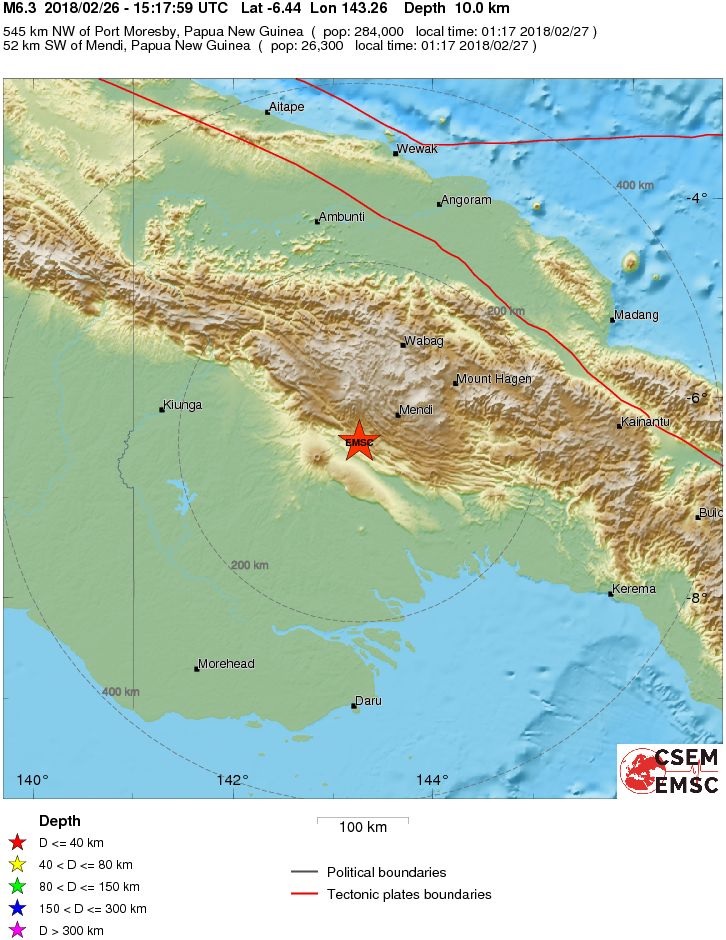 M 6.3 - NEW GUINEA, PAPUA NEW GUINEA - 2018-02-26 15:17:59 UTC