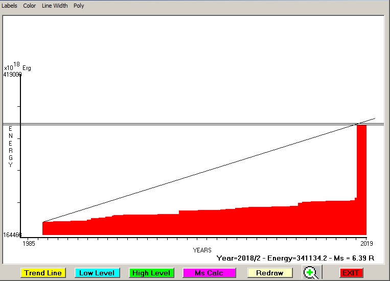 Fig. 4. Expected EQ magnitude due to application of the LSEFM (Lithospheric Seismic Energy Flow Model) on past seismic history of the regional seismogenic area.