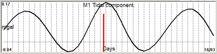 Fig. 2. M1 tidal variation (black line) v.s time of occurrence (red bar) of the EQ.