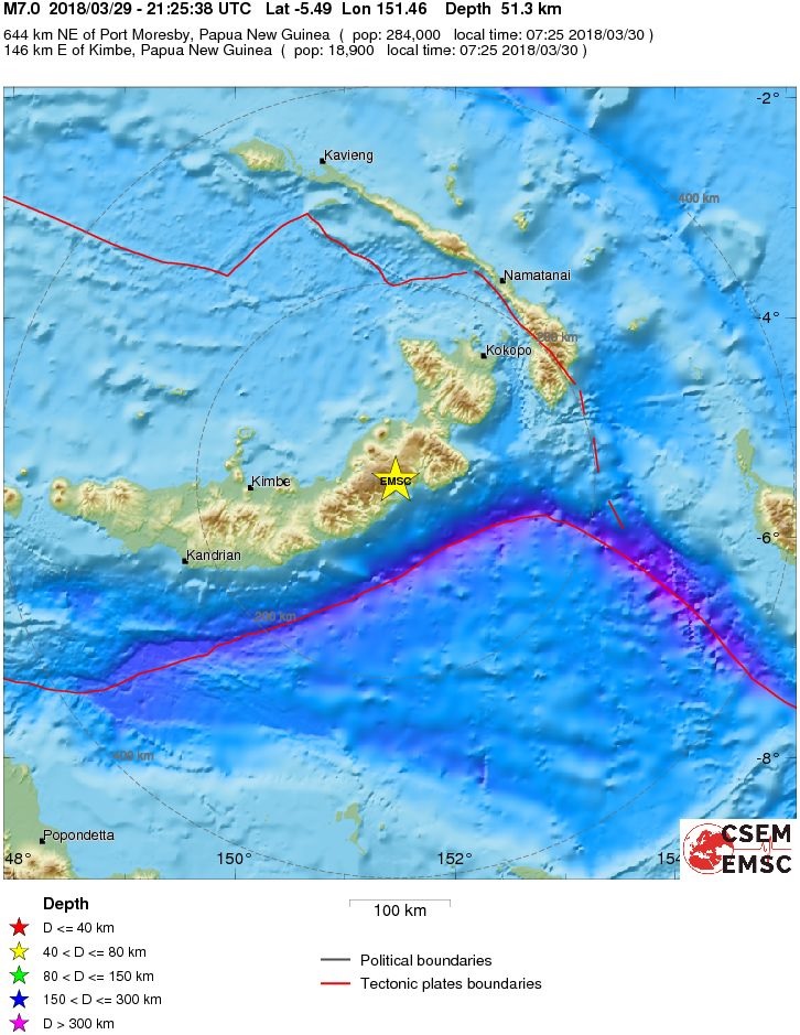 M 7.0 - NEW BRITAIN REGION, P.N.G. - 2018-03-29 21:25:38 UTC