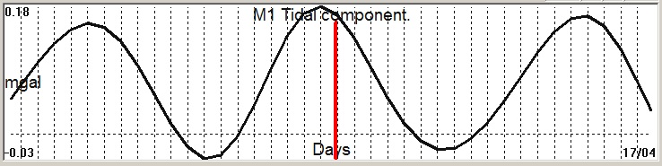 Fig. 2. M1 tidal variation (black line) v.s time of occurrence (red bar) of the EQ.