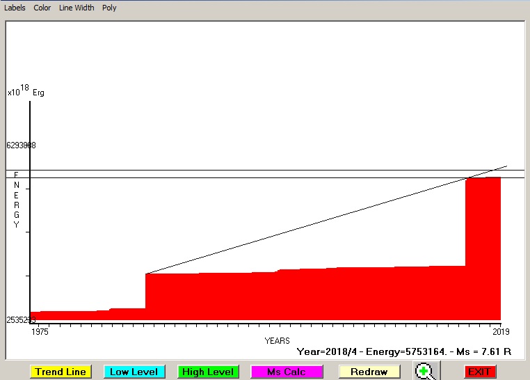 Fig. 4. Expected EQ magnitude due to application of the LSEFM (Lithospheric Seismic Energy Flow Model) on past seismic history of the regional seismogenic area.