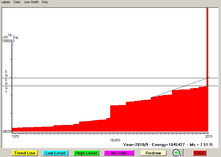 Fig. 4. Expected EQ magnitude due to application of the LSEFM  (Lithospheric Seismic Energy Flow Model) on past seismic history of the regional seismogenic area.