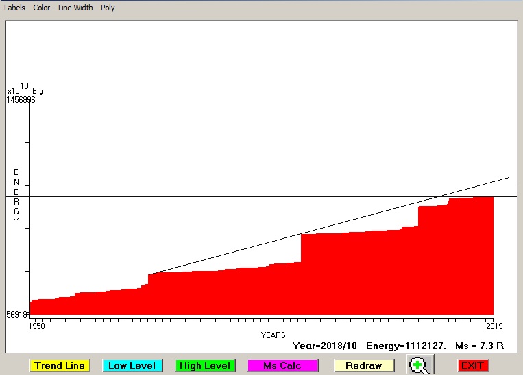 Fig. 4. Expected EQ magnitude due to application of the LSEFM  (Lithospheric Seismic Energy Flow Model) on past seismic history of the regional seismogenic area.