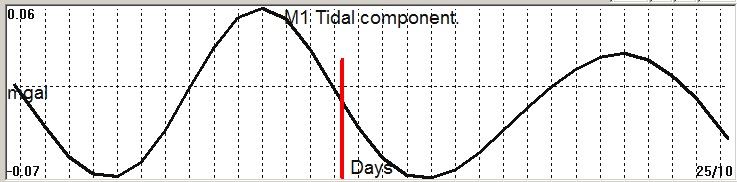 - 1 day period oscillating     electrical signals vs 14     days period tidal