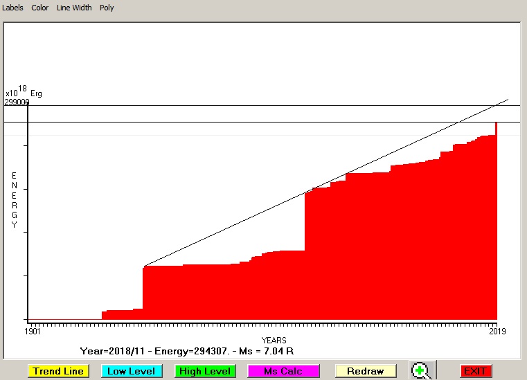 Fig. 4. Expected EQ magnitude due to application of the LSEFM  (Lithospheric Seismic Energy Flow Model) on past seismic history of the regional seismogenic area.