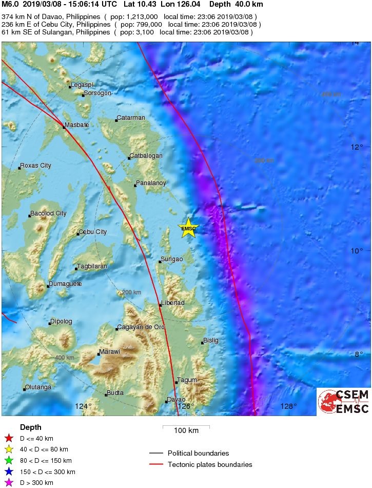 M 6.0 - PHILIPPINE ISLANDS REGION - 2019-03-08 15:06:14 UTC