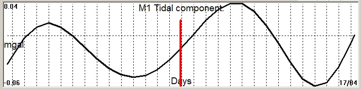 Fig. 2. M1 tidal variation (black line) v.s time of occurrence (red bar) of the EQ.
