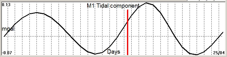 Fig. 2. M1 tidal variation (black line) v.s time of occurrence (red bar) of the EQ.