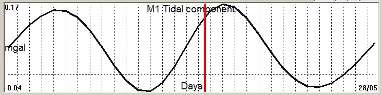Fig. 2. M1 tidal variation (black line) v.s time of occurrence (red bar) of the EQ.