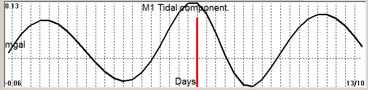 Fig. 2. M1 tidal variation (black line) v.s time of occurrence (red bar) of the EQ.