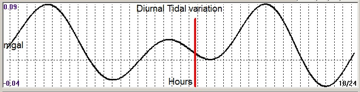 Fig. 3. Diurnal (K2) tidal variation (black line) v.s time of occurrence (red bar) of the EQ.