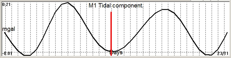 Fig. 2. M1 tidal variation (black line) v.s time of occurrence (red bar) of the EQ.