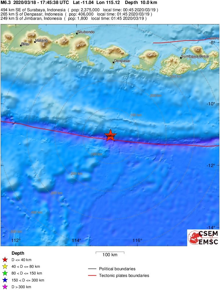 Fig. 1. EQ Location (red star, after EMSC) .