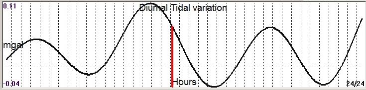 Fig. 3. Diurnal (K2) tidal variation (black line) v.s time of occurrence (red bar) of the EQ.