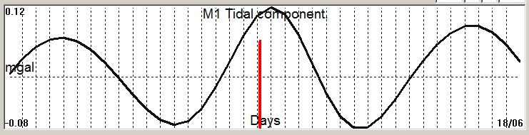 Fig. 2. M1 tidal variation (black line) v.s time of occurrence (red bar) of the EQ.