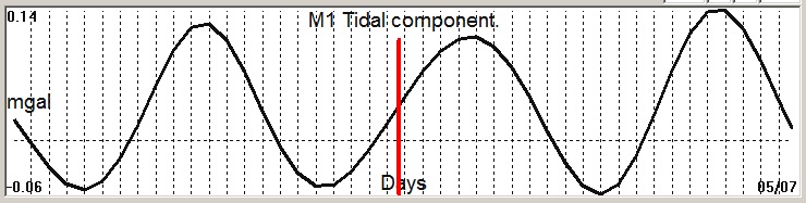 Fig. 2. M1 tidal variation (black line) v.s time of occurrence (red bar) of the EQ.