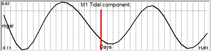 Fig. 2. M1 tidal variation (black line) v.s time of occurrence (red bar) of the EQ.