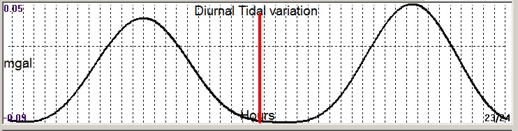 Fig. 3. Diurnal (K2) tidal variation (black line) v.s time of occurrence (red bar) of the EQ.
