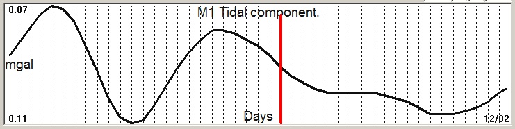Fig. 2. M1 tidal variation (black line) v.s time of occurrence (red bar) of the EQ.
