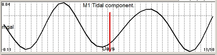Fig. 2. M1 tidal variation (black line) v.s time of occurrence (red bar) of the EQ.