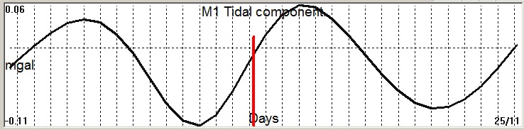 Fig. 2. M1 tidal variation (black line) v.s time of occurrence (red bar) of the EQ.